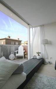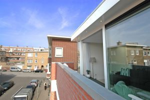 Het idee is om van een compact appartement een ruimere woning te maken geschikt voor een gezin. Bovenop het appartement bouwen we een verdieping met een balkon. En daarboven op komt een dakterras. Idee is dat de uitbreiding meedoet met de omgeving én – als je beter kijkt – een verrassende noot is.