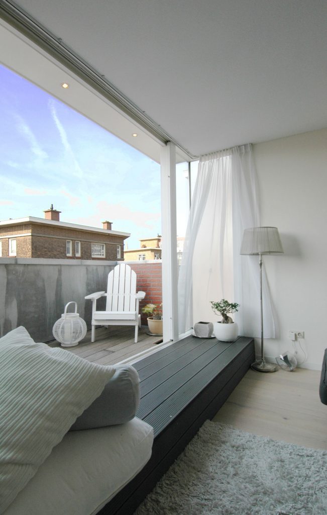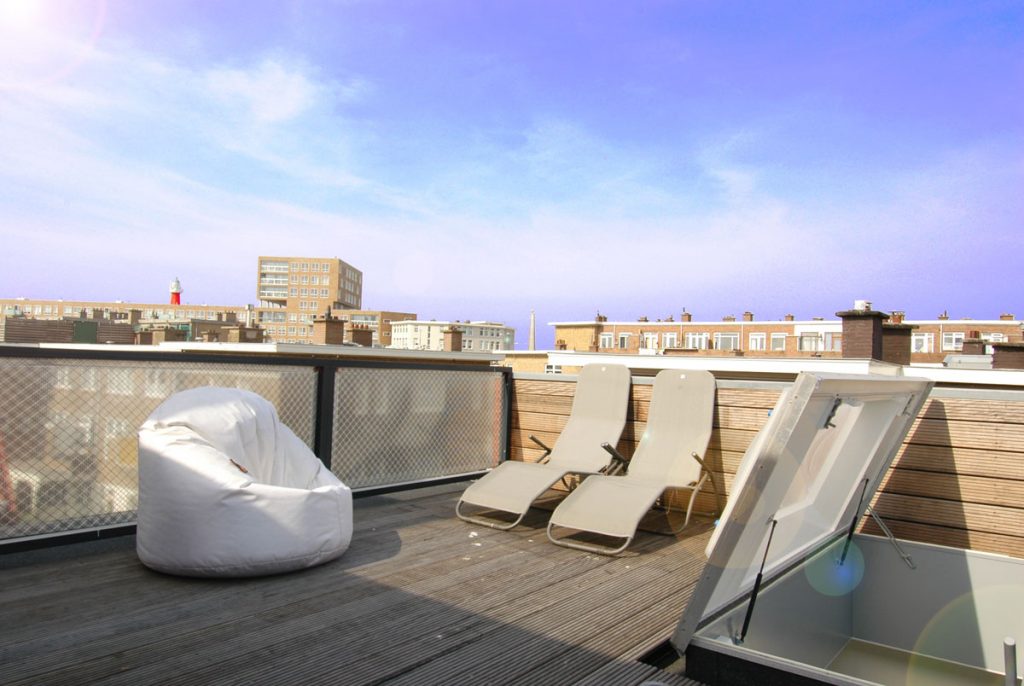 Het idee is om van een klein appartement een ruimere woning te maken met een dakterras. Idee is dat de uitbreiding meedoet met de omgeving én – als je beter kijkt – een verrassende noot is.