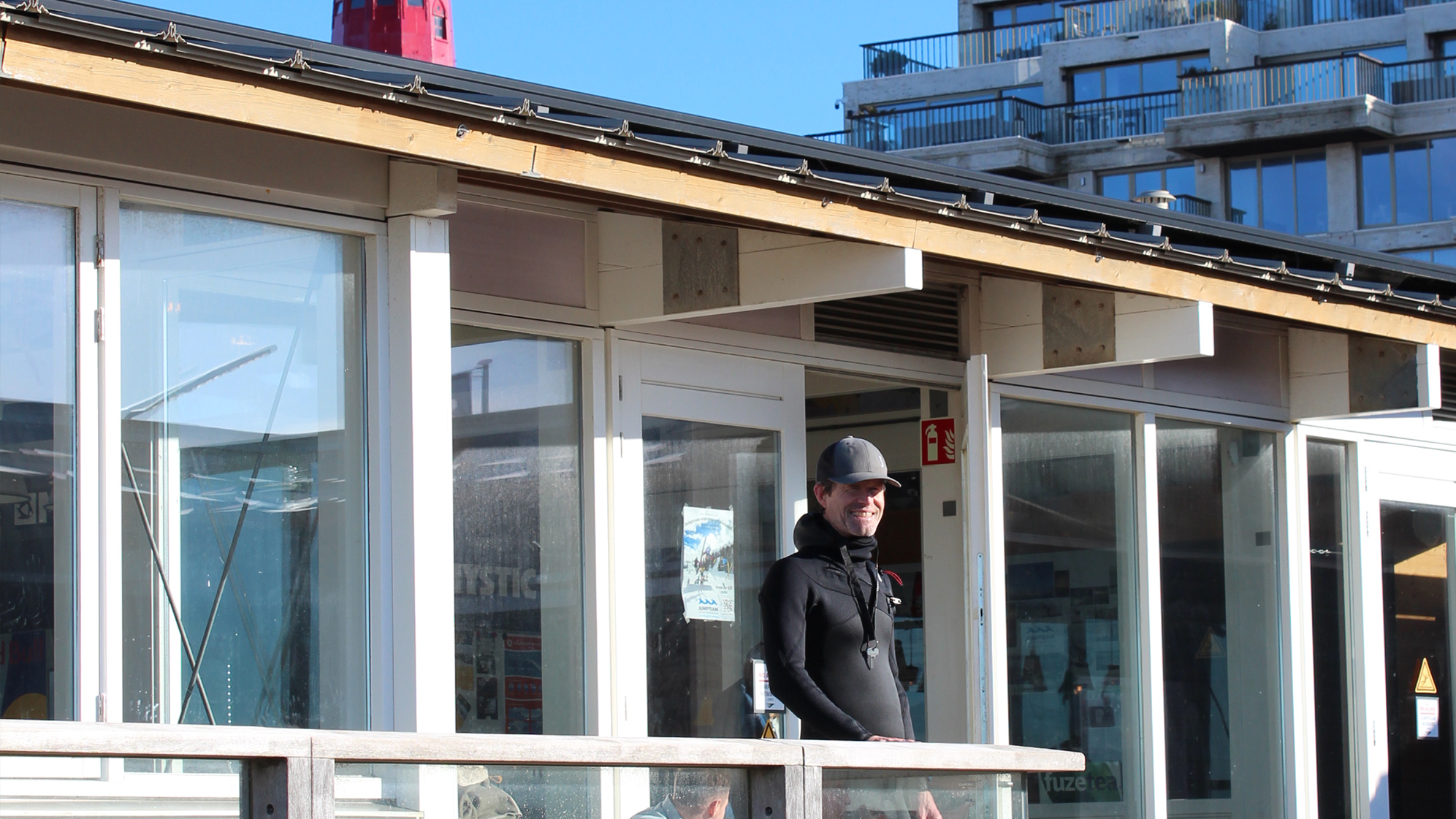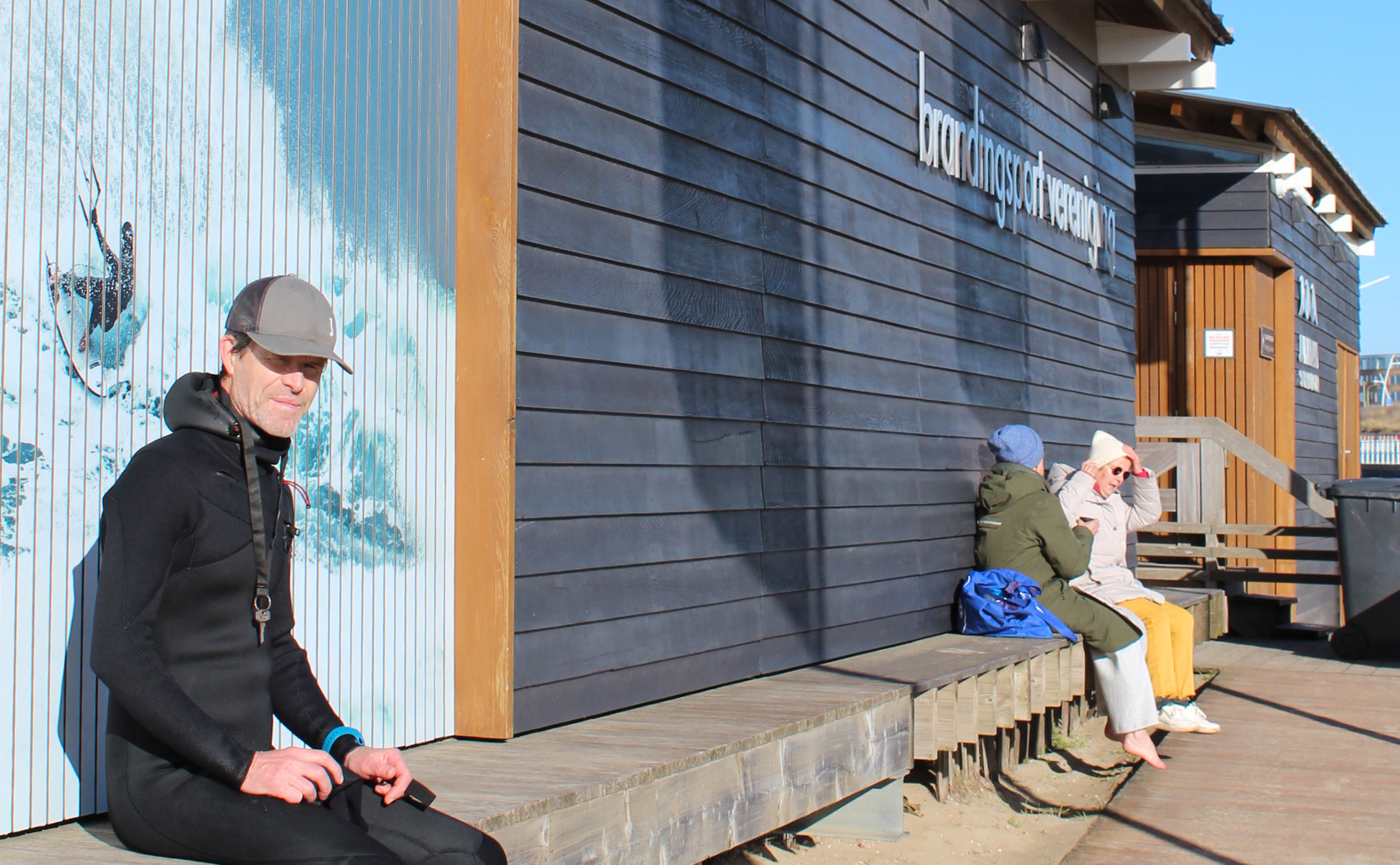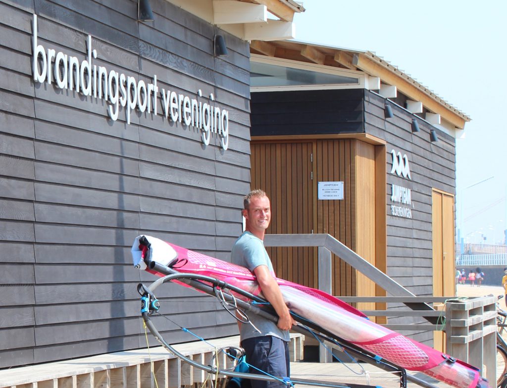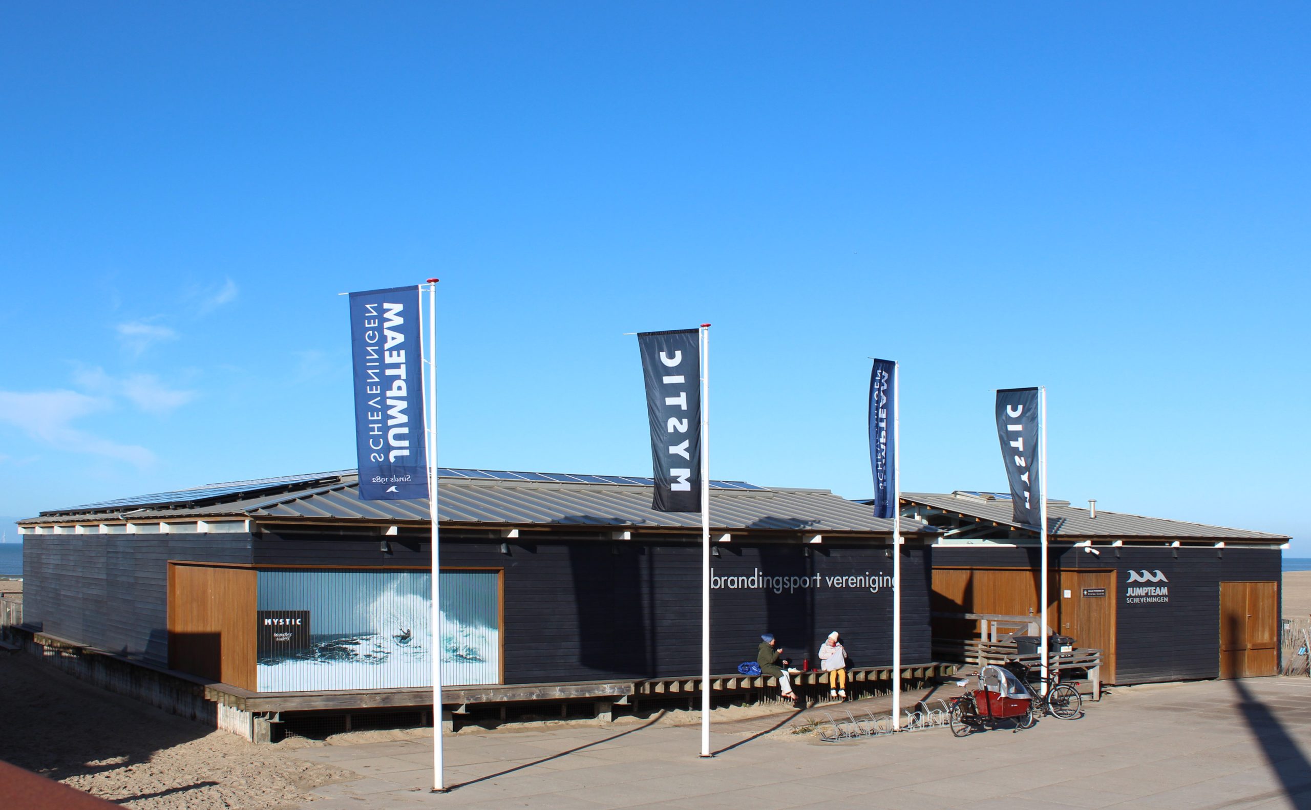 Het idee voor Brandingssportvereniging Jumpteam op het strand van Schevening was een nieuwe accommodatie te bouwen die het hele jaar op het strand blijft staan. Op- en afbouwen werd verleden tijd. Het ontwerp is écht voor de sporter: om in de luwte te kunnen op- en aftuigen, om je materiaal te kunnen stallen, om samen te komen en om elkaar veilig te houden; ramen naar de zee, ook op de hoeken, geven zicht op de sporters. De reddingsboot staat paraat achter een deur aan de boulevard zodat hij snel uit kan varen. En vanaf de bar zijn alle toegangen – naar stalling, kleedkamers, strand en opgang – zichtbaar; dat maakt het gebouw beheersbaar.